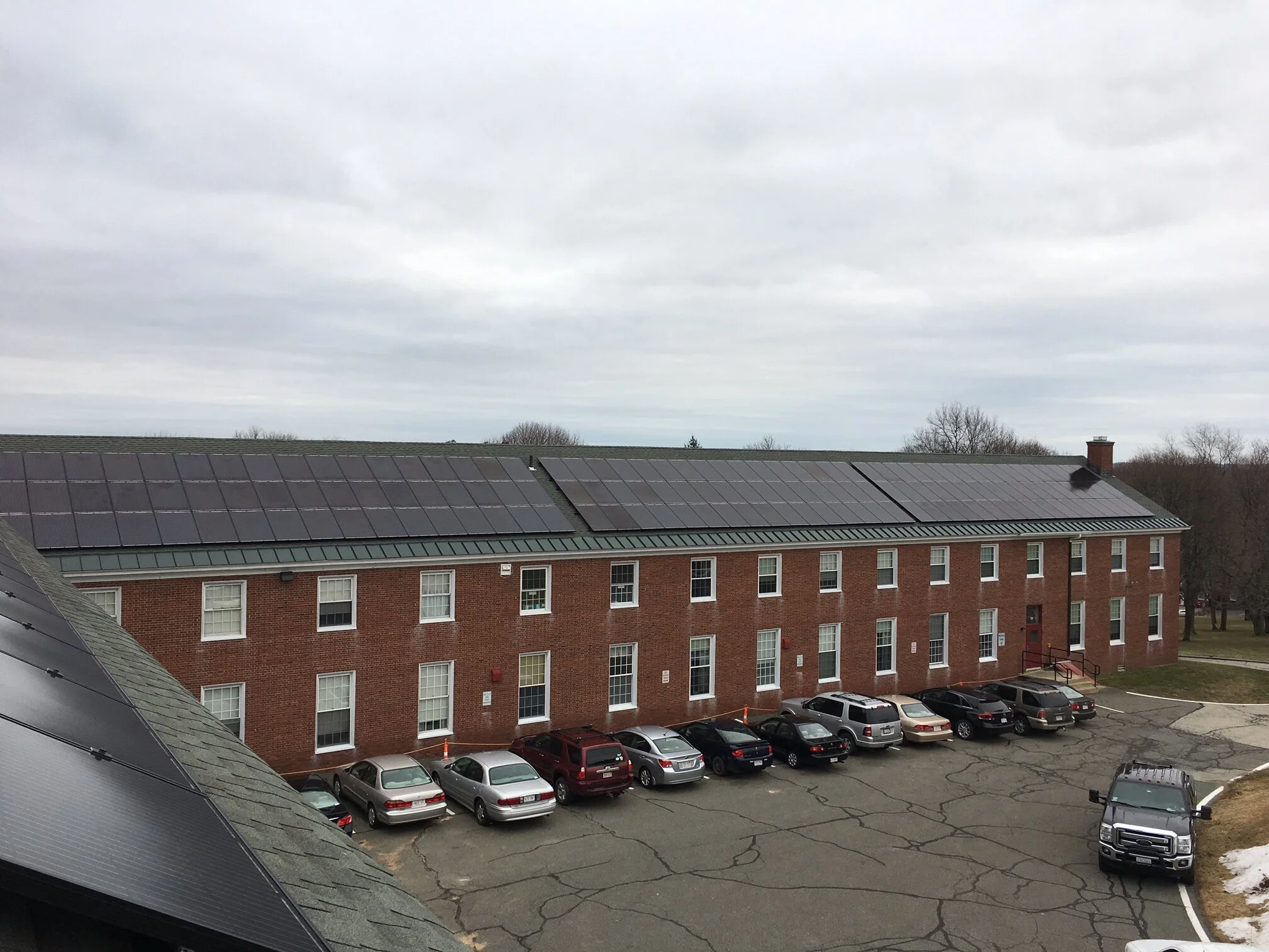 Project operational in 5 months after PPA signing with construction over occupied dormitories and administration buildings. Project included 5 roofs with mix of wooden rafter and steel I-beam supports. SolarEdge inverters and optimizers provide module level MPPT and production data.