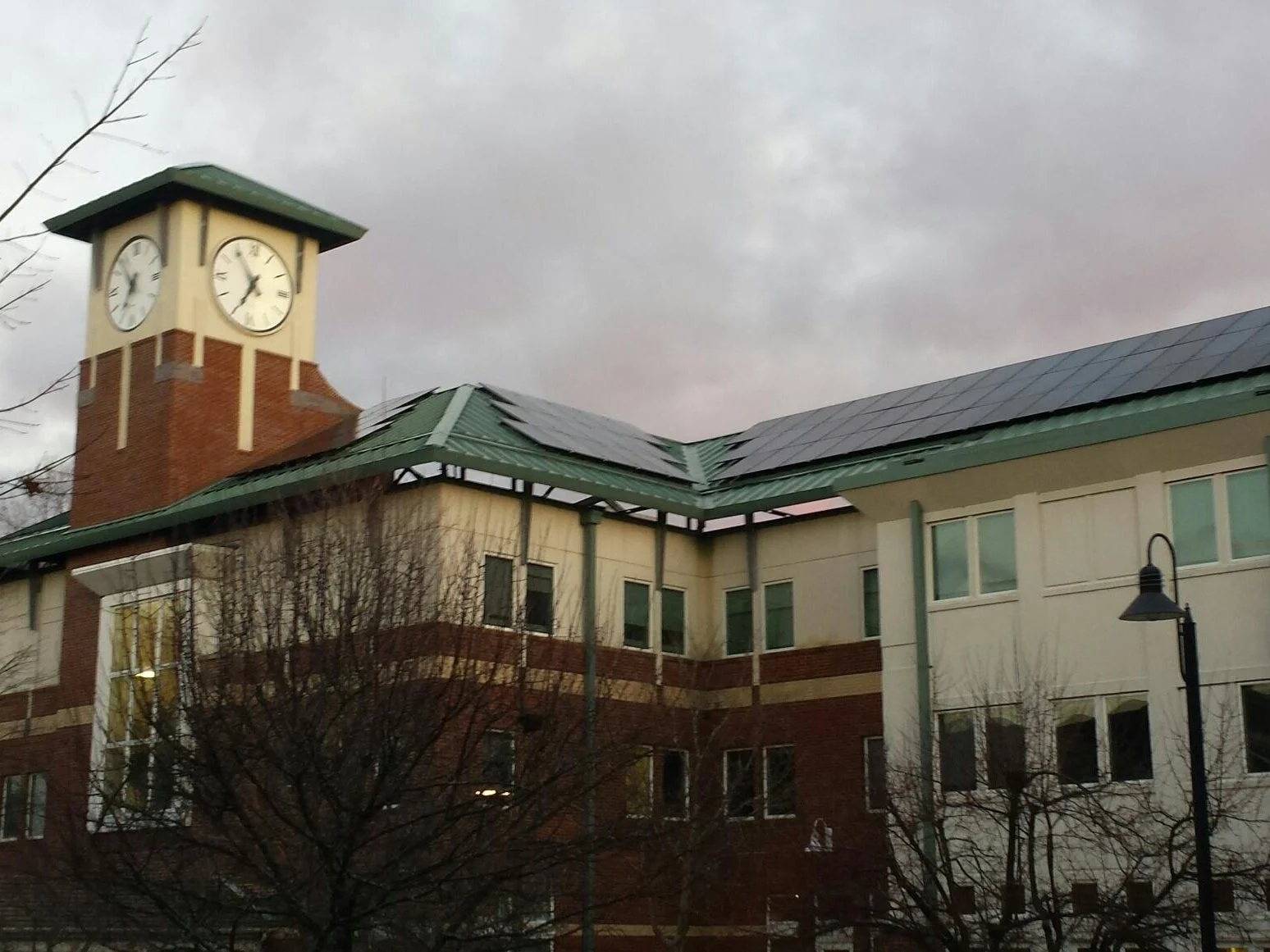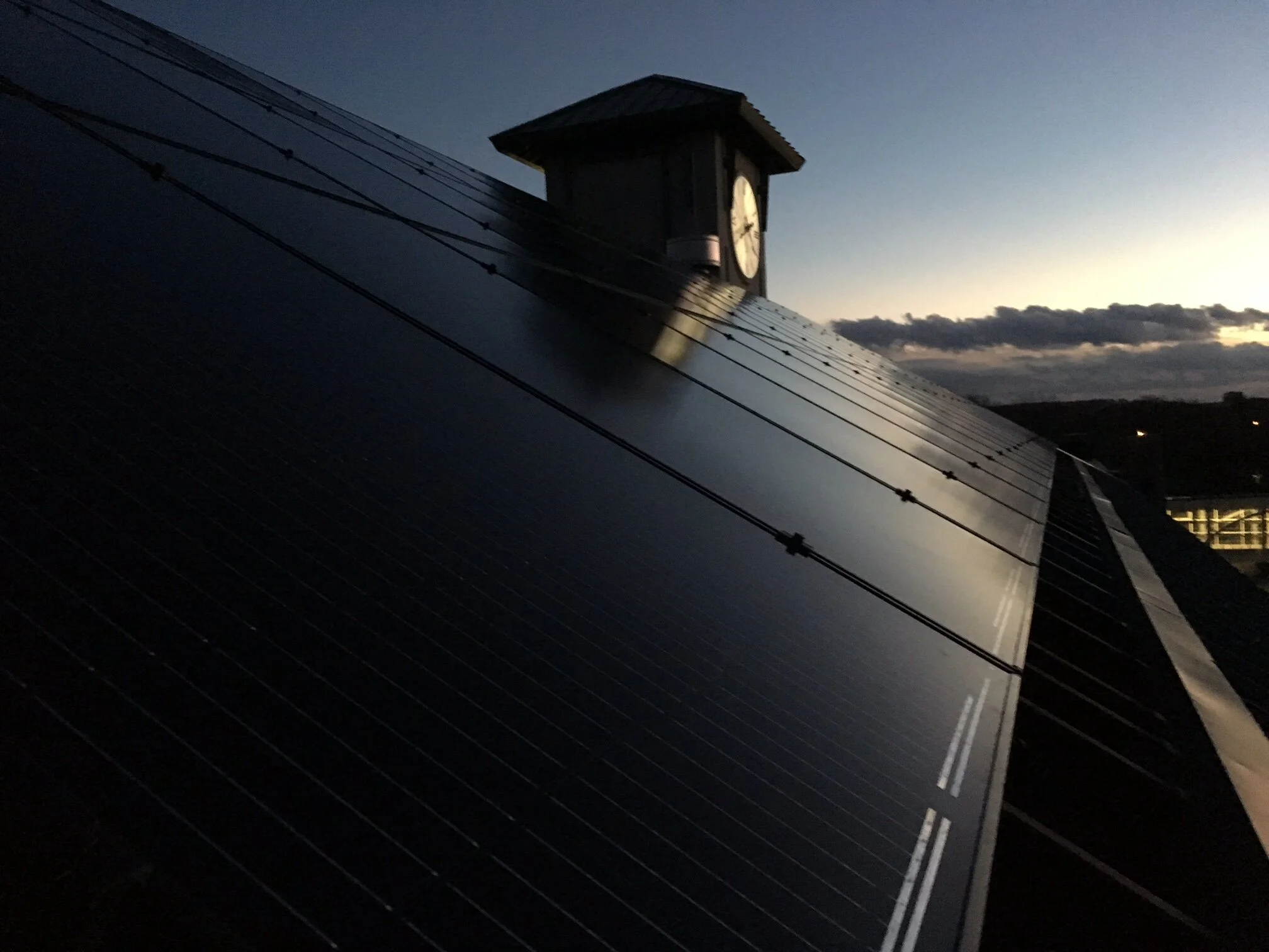 Challenging metal roof PV system has 6 PV arrays with 3 different exposures. Solution included 10 small HiQ Solar inverters to handle the differing module string lengths.