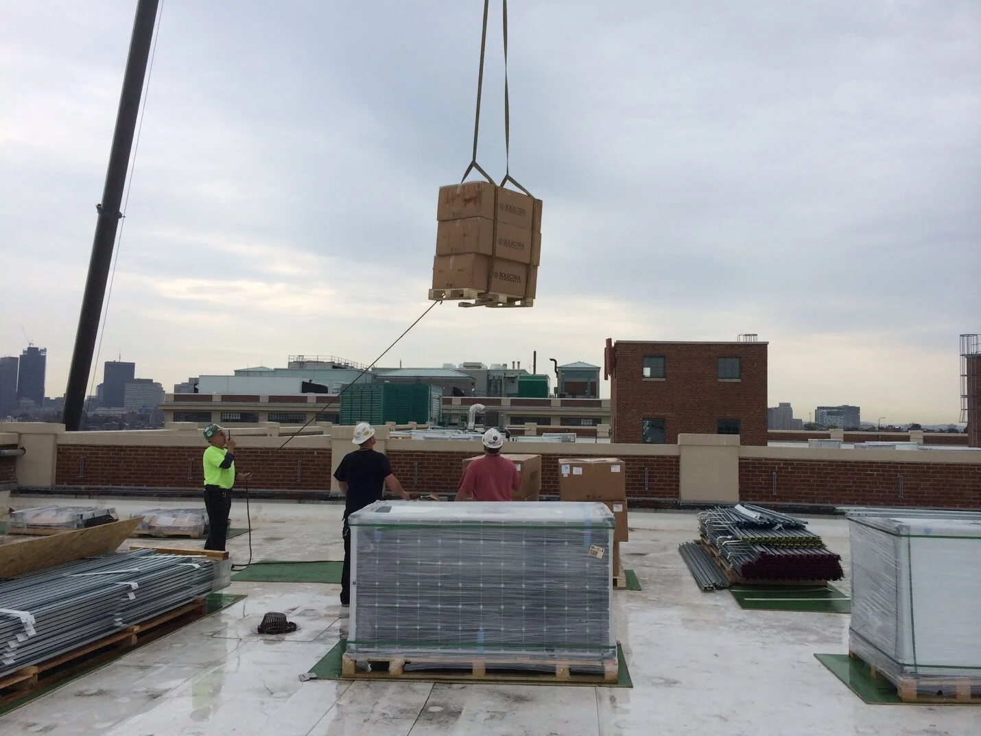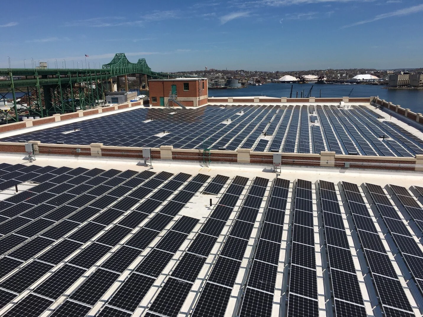 The harbor location and 100-foot roof elevation created high wind loads addressed with the installation of a GameChange GridLite 10-degree racking system to minimize ballast requirements. The City of Boston required a 621 Energy performed Federal Aviation Administration (FAA)-approved solar glare study due to the site’s proximity to Logan Airport. 621 Energy performed this study to determine that solar panel glare would not impact pilots landing or taking off.